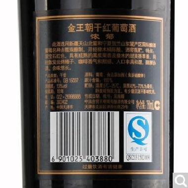 王朝 原装橡木桶红酒 干红葡萄酒750ml*6瓶 国产红酒整箱
