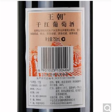 王朝 原装橡木桶红酒 干红葡萄酒750ml*6瓶 国产红酒整箱