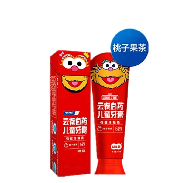 云南白药益生菌儿童牙膏60g桃子果茶香型(芝麻街版)6至12岁适用