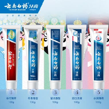 • 云南白药牙膏国粹家庭装5支套装清新口气去口臭美白牙齿去黄抗敏
