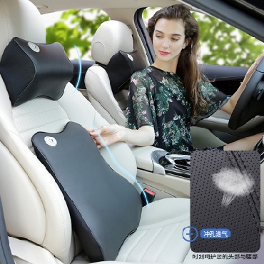 汽车记忆棉头枕腰靠 皮质靠垫腰枕靠背 腰垫背靠批发套装厂家直销