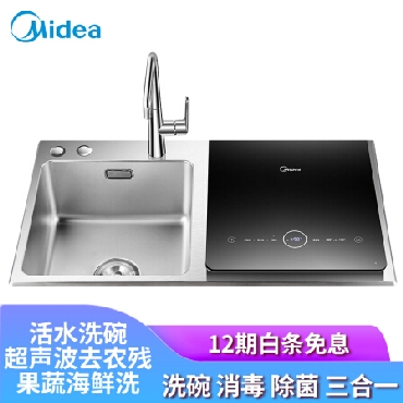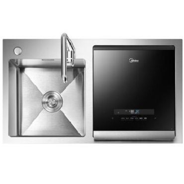 • 美的(Midea)6套 洗碗机 家用超声波变频活水洗蔬果去农残三合一 手工304不锈钢水槽洗碗机F3