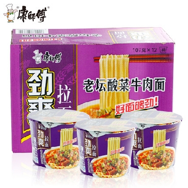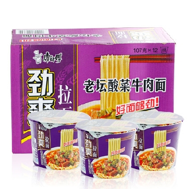 康师傅劲爽拉面整箱12桶装 老坛酸菜牛肉面 方便面泡面食品