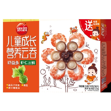 思念儿童成长营养虾仁三鲜云吞210g/盒 30只 12盒/箱