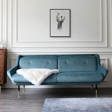 北欧风格PU皮沙发 简约现代棕色驼色灰色沙发三人沙发 复古工业风沙发定制