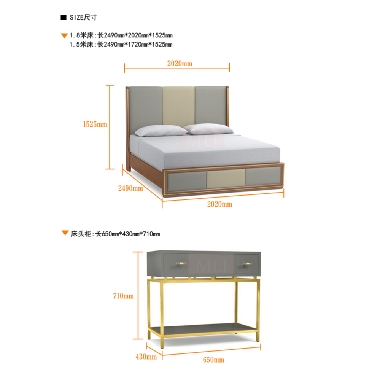 美式卧室家具轻奢风家具简约实木1.5米双人床床头柜工厂定制
