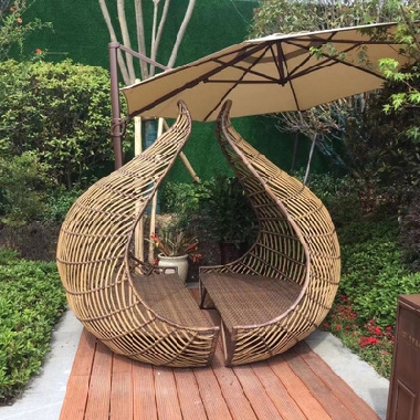 户外凉亭防风PE藤编沙发躺床 设计师别墅阳台酒店工程创意景观亭