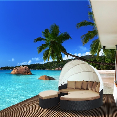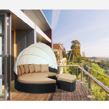 厂家直销圆形户外藤编躺床 酒店工程个性创意款藤艺休闲家具定制