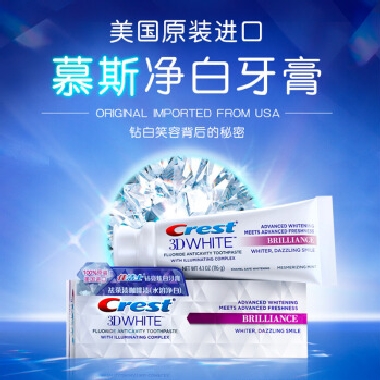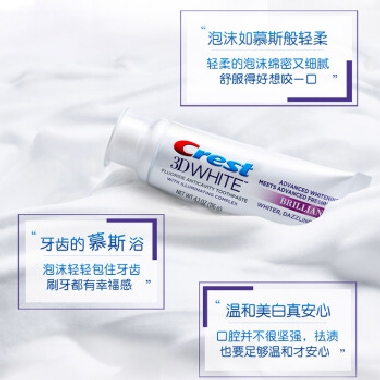 佳洁士 Crest 3D钻亮炫白牙膏(慕斯净白)116克(美国进口)(原名:水溶净白)(热感美白 美