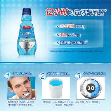 佳洁士健康专家 抗牙龈红肿出血漱口水500ml三瓶装(长效保护牙龈 防出血 无酒精)(美国进口)肖战
