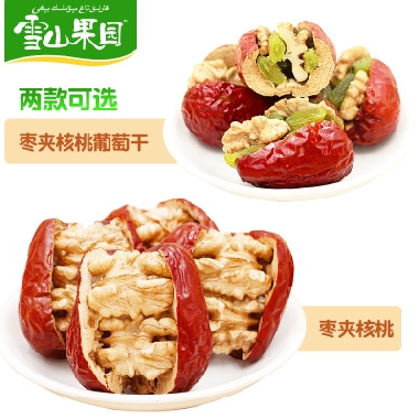 • 雪山果园 新疆特产枣夹核桃 和田大红枣夹核桃仁加葡萄干268g*2袋包邮
