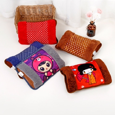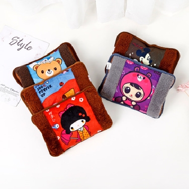 安全防暴充电热水袋礼品定制厂家 毛绒双插卡通印花暖宝宝暖手宝