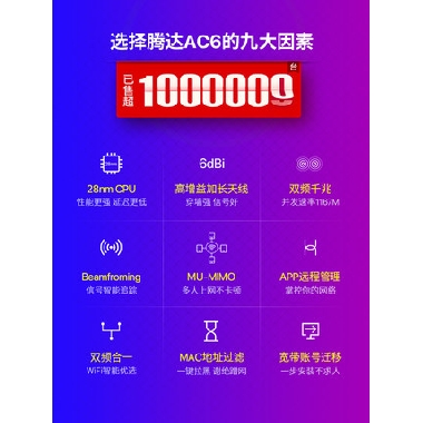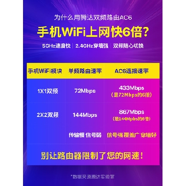 腾达无线路由器 家用穿墙高速wifi 5g双频千兆速率穿墙王 百兆端口电信宿舍学生寝室漏油器ac6