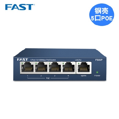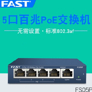 迅捷FS05P 百兆4口标准POE供电交换机摄像头监控无线AP供电器模块
