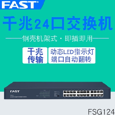 FAST 迅捷 FSG124 24口全千兆交换机 铁壳机架式 1000M交换机