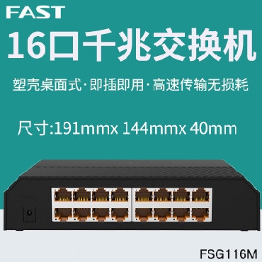 迅捷 FSG116M 全千兆16口交换机塑壳桌面式1000M网络监控分线器