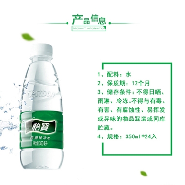 怡宝纯净水350ml*24瓶整箱 小瓶装饮用水矿泉水