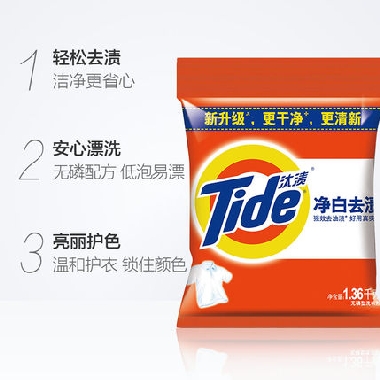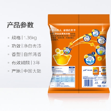 • 汰渍洗衣粉家庭装持久净白去渍去油污洁净无磷袋装2.72斤实惠装