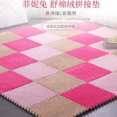 菲妮兔方块拼接泡沫地垫绒面地毯舒棉绒加厚榻榻米地垫60*60*1.0