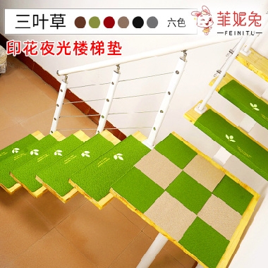 经典纤维款免胶自粘楼梯垫亚麻夜光印花楼梯踏步台阶脚垫防滑静音纤维款21*60*折4
