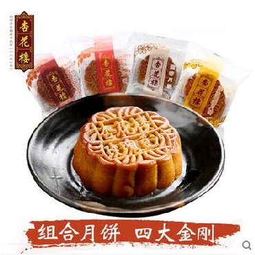 杏花楼 月饼四大金刚 400g 广式老式月饼散装 五仁豆沙奶椰莲蓉 4口味经典组合装